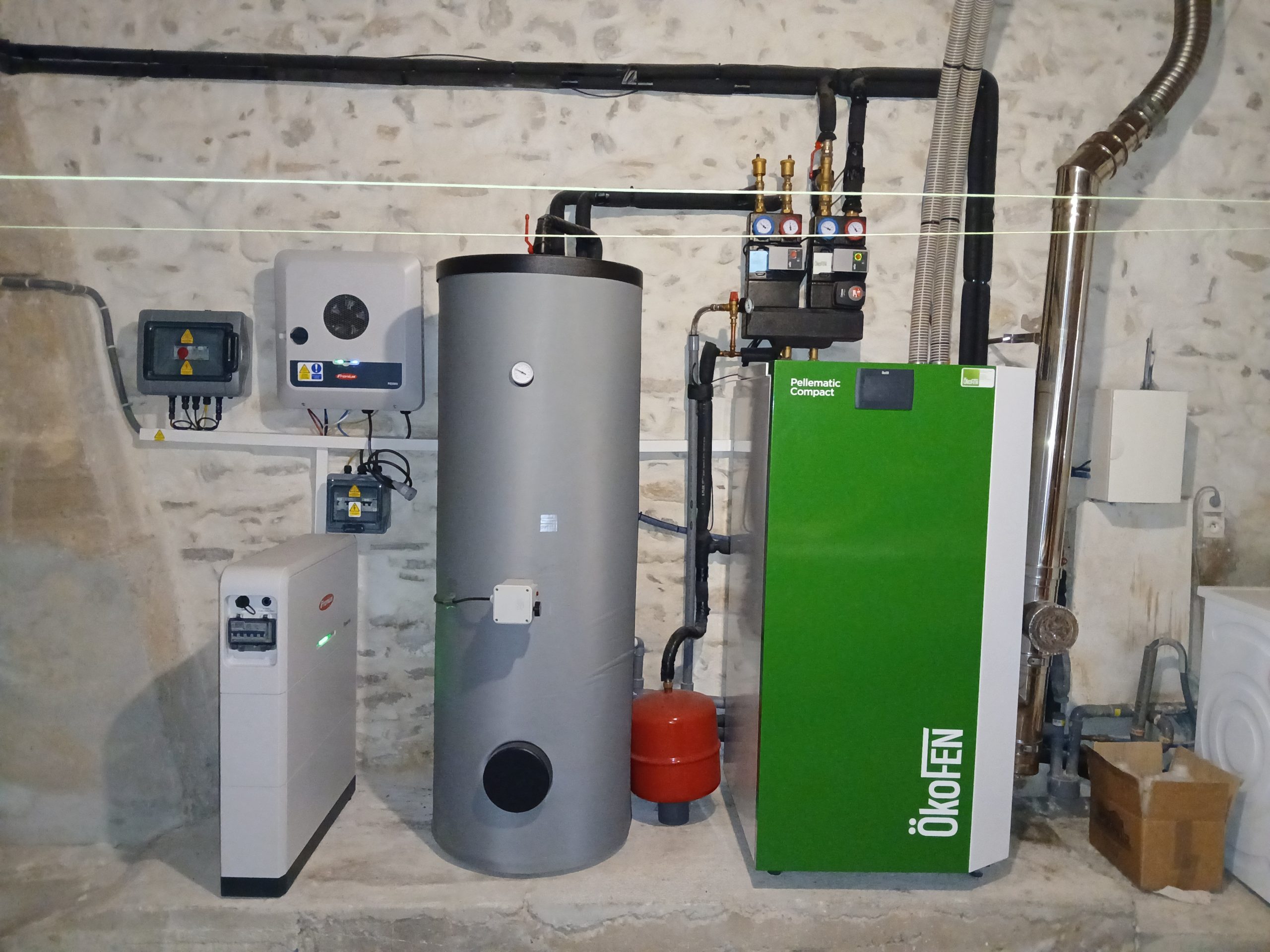 Ce projet illustre parfaitement la complémentarité entre les énergies renouvelables thermiques et électriques. La chaudière à granulés assure le chauffage et la production d’eau chaude sanitaire, tandis que les panneaux photovoltaïques couplés à une batterie de stockage permettent de maximiser l’autoconsommation électrique et de garantir une continuité d’alimentation en cas de coupure réseau.